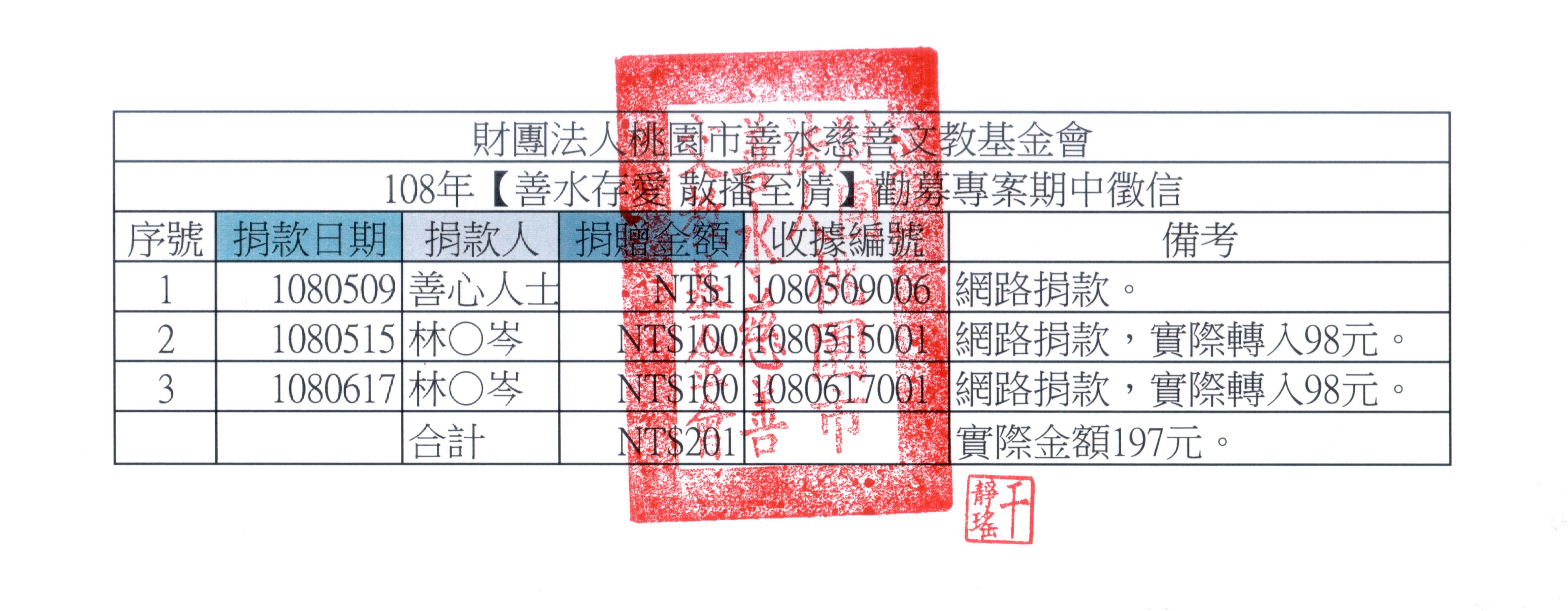 112年「善水存愛 散播至情」勸募活動計畫變更公告